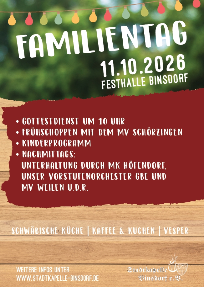Sonntag 11.10.2026: Gottesdienst, Frühschoppen, Familienfest & Vesper